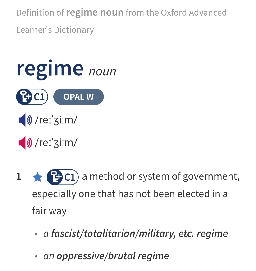 One of the most common examples of word dysmorphia is the word “regime.” Western governments are almost never described as regimes. Instead, the term appears almost exclusively when discussing states targeted by U.S. Western pressure: “the Iranian regime,” “the Assad regime,” or “the Venezuelan regime.” The word subtly signals illegitimacy and repression. By contrast, allied governments, regardless of their democratic credentials, are described as “administrations,” “partners,” or simply “governments.” Before any political analysis begins, the linguistic frame has already established who is presumed legitimate.